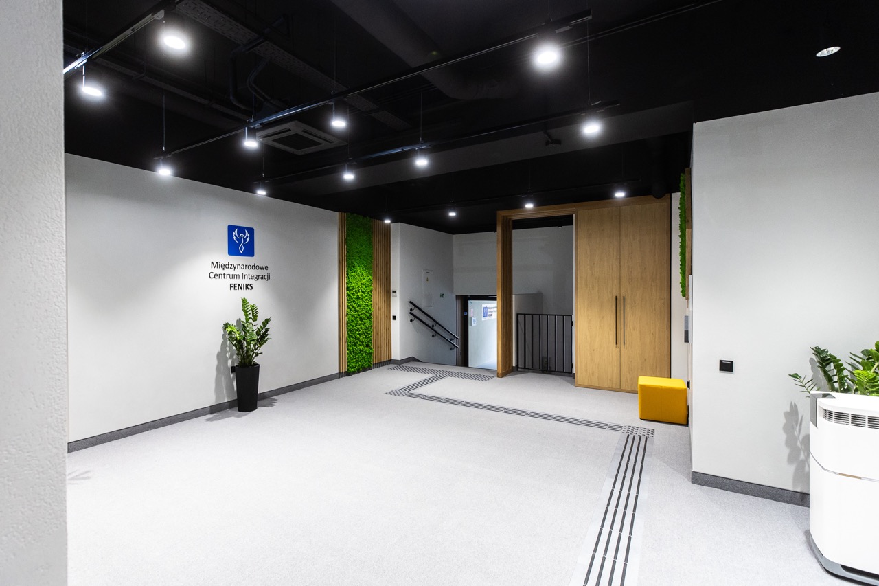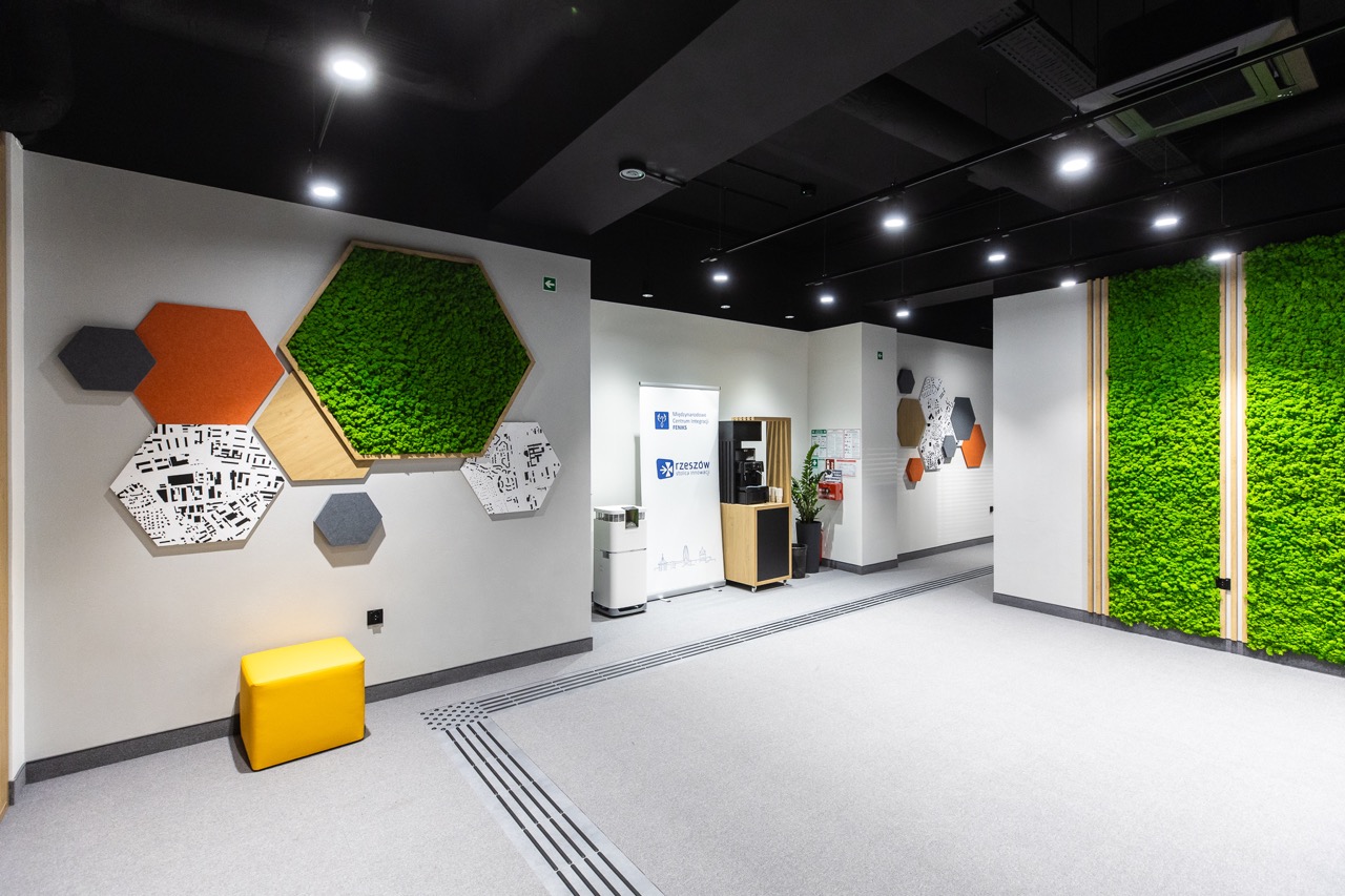 Galeria – przestrzeń co-workingowa to powierzchnia użytkowa Centrum, w której mogą odbywać się spotkania integracyjne. Znajdują się tutaj 3 pufy różnej wielkości, ekspres do kawy, przestronna szafa na ubrania, nawilżacz powietrza.